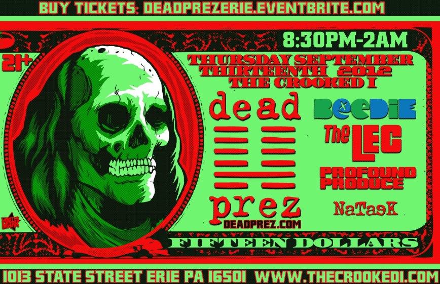 Thursday, September 13th: DEAD PREZ with NatasK // Profound // Beedie // The LEC @ The Crooked I, 1013 State Street, Erie PA // $15, 21+ with ID // 830PM-2AM