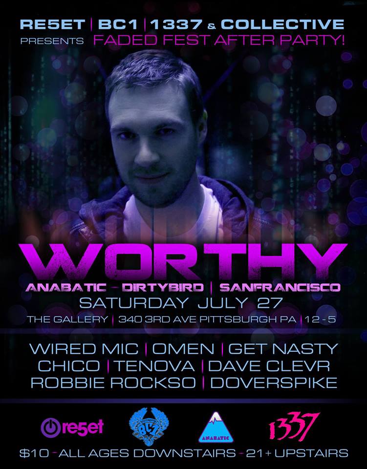 •     Its Burning up!!!!  And Only getting Hotter!   July 27th thru 28th…. PITTSBURGH PARE5ET, Collective Thought Project & 1337 Come together for the first time ever to bring you the Faded Fest After Party with San Francisco based producer WORTHY!