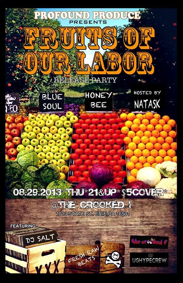 Blue Soul: MUSIC, WORDS, & ART – With Blue Soul, Dan Head brings together a community of artists to showcase their talents in this flowing project of performers, entertainers, musicians, lyricists, poets, and visual artists. For this show, A collaboration of smooth musicians such as Dan Head, LaMorvielle Campbell, andChris Head will be accompanied by some of Eries illest MC’s: Jonny Evans, Tony Facchiano, Profound Produce, Charles Brown. HoneyBee: The prolific singer that has been rocking stages in Erie with us since the jump will be breaking it down. Dj Salt: The mastermind behind Hot Mess Productions be constructing live beats on the spot and off the top. There will be copies of “Fruits of our Labor” and Profound Produce t-shirts on deck. The first 200 people in the door will receive free gift! Underground Hype and The Box truly appreciates everyone who has supported our efforts and this album truly represents what we have become. |